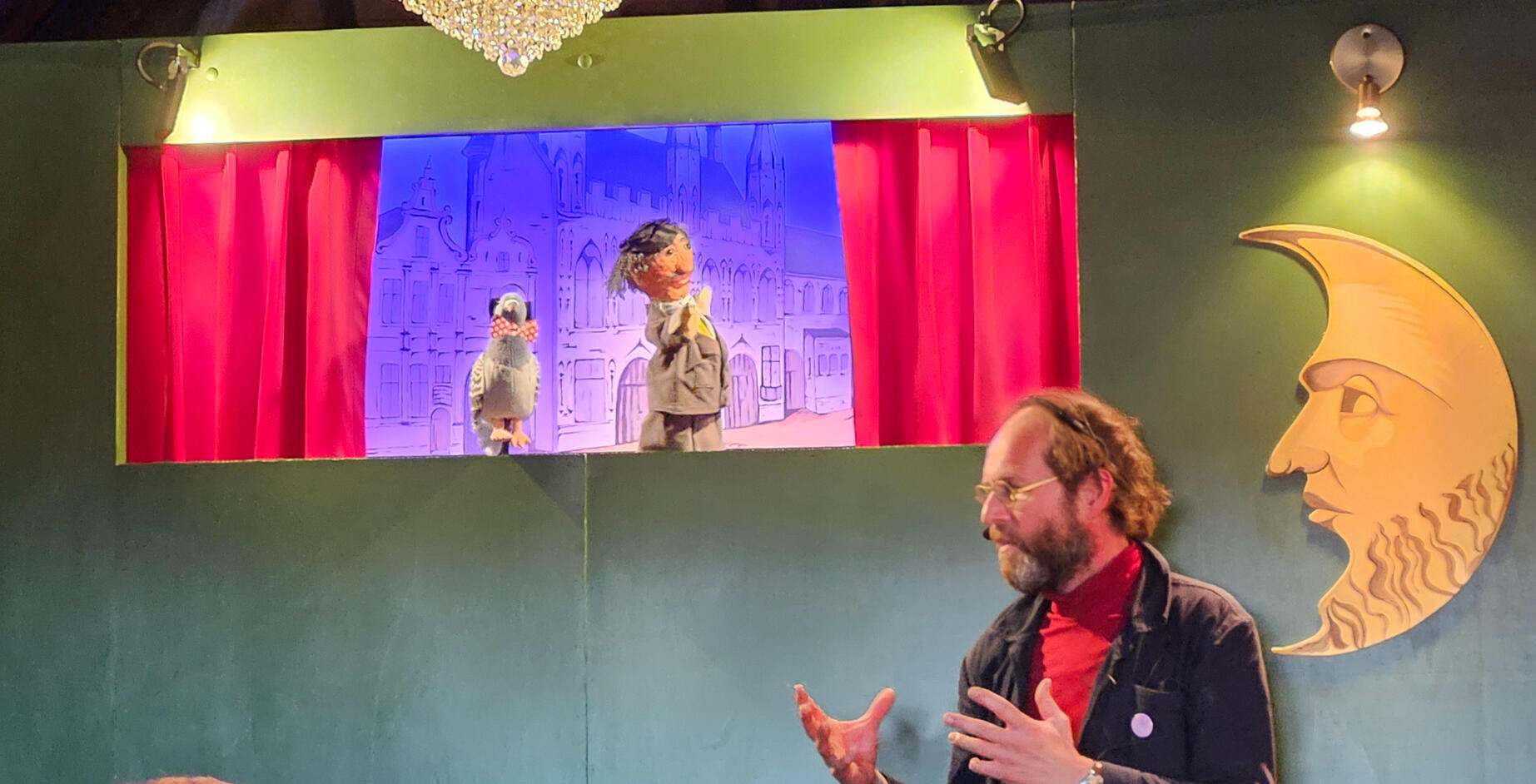 vzw Poppentheater Uilenspiegel werd opgericht om terug aan te sluiten op de oude Brugse traditie waarbij Pietje Puppe met unieke marionetten in Brasserie Uilenspiegel startte begin de jaren 80 met Theater Uilenspiegel.Beleef de heropleving van het poppentheater in Brugge in zaal Secret Bar van Huisbrouwerij Halve Maan op het Walplein 26 te Brugge. Het gezelschap van Poppentheater Uilenspiegel Brugge neemt je op sleeptouw met de Brugse dames Molvienne en Mance en de mannen Alouis en Fons, die ons overladen met Brugse actualiteit en politiek doorspekt met Brugse herinneringen, wijsheden en niet te missen Brugse uitdrukkingen.